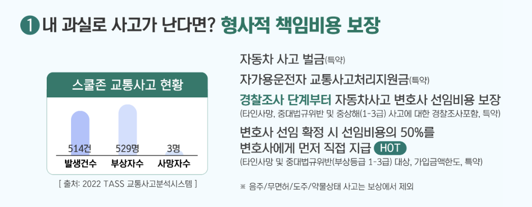 둘째, 최대 2억 원까지의 높은 보장금을 지급하여, 사고 발생 시 운전자의 금전적 부담을 크게 줄여줍니다. 이는 운전자가 사고에 대비하여 안심하고 운전할 수 있는 환경을 조성합니다.