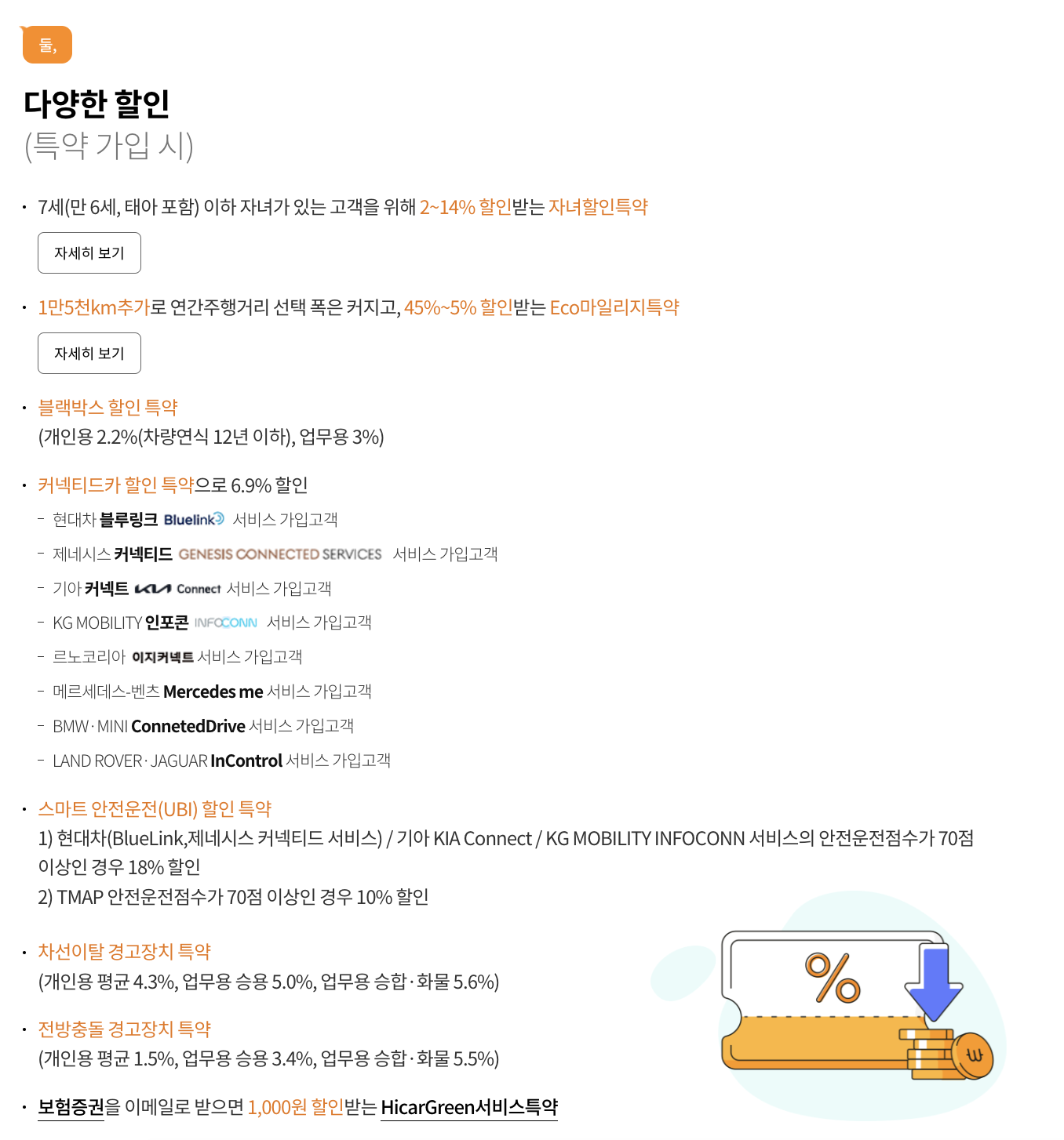 넷째, 현대해상은 다양한 할인 특약을 제공하여 보험료를 추가로 절감할 수 있는 기회를 제공합니다. 예를 들어, 자녀할인 특약이나 ECO 마일리지 특약과 같은 옵션을 통해 보험료를 절약할 수 있습니다.