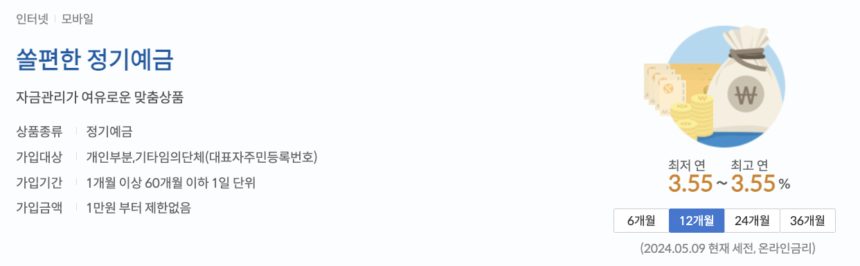 신한은행의 쏠편한 정기예금은 다양한 가입 조건과 기간 옵션을 제공하며, 이용자의 자금 관리에 유연성을 더합니다. 만 14세 이상이면 누구나 가입할 수 있으며, 최소 가입금액은 1만원부터 시작하여 거치식 예금으로 운영됩니다. 비과세종합저축의 가능성도 이 상품의 매력적인 부분 중 하나입니다.