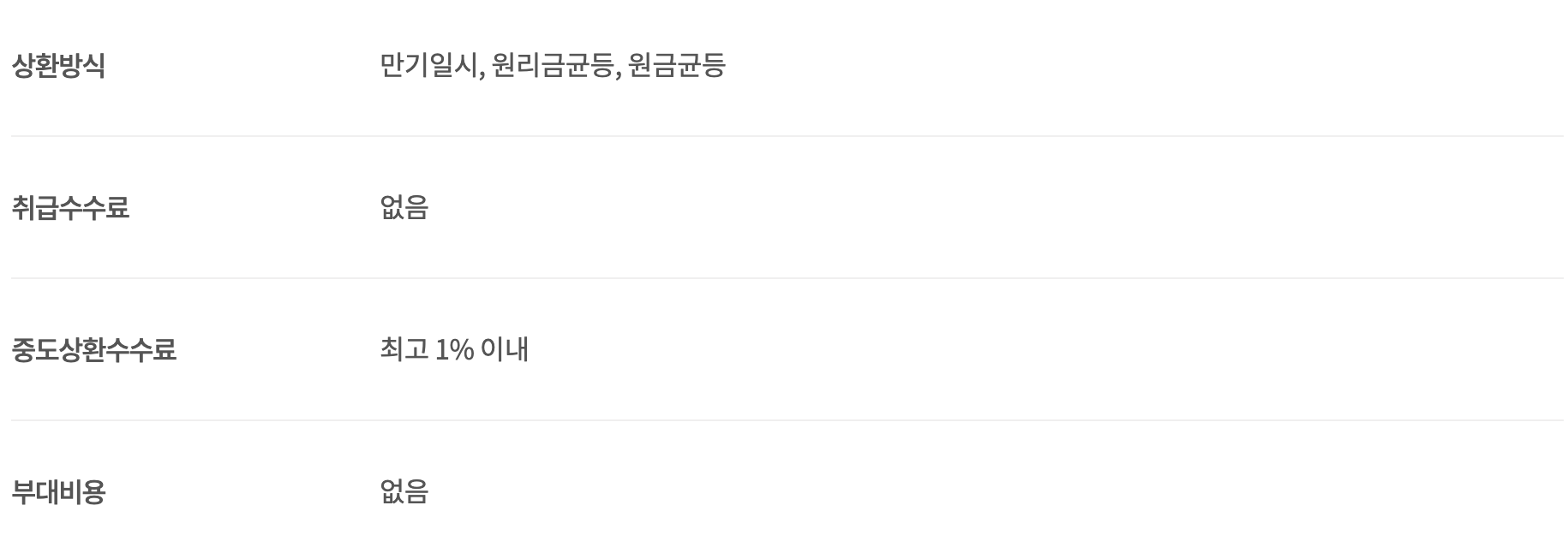 주부 OK론은 중도 상환 수수료가 최대 1% 이내로 설정되어 있으며, 연체 시에는 약정 금리에 연 3%가 추가되어 최고 연 19.99% 이내로 적용됩니다. 이자는 매월 후취로 부과되며, 상환 방식은 만기 일시, 원리금 균등, 원금 균등 중 선택할 수 있습니다.