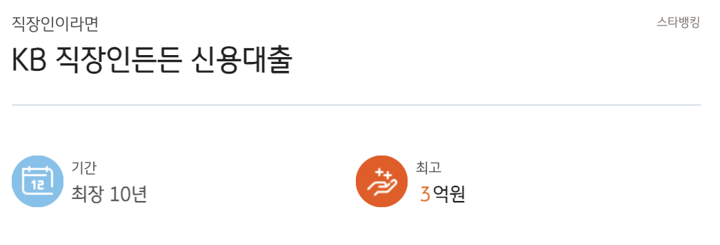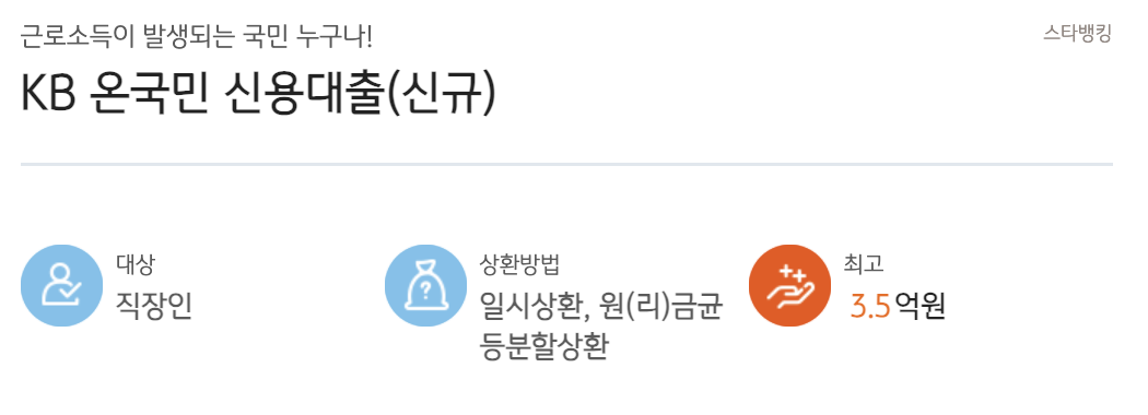 - 한도: 최대 3억원 (KB Star 신용대출 기준)