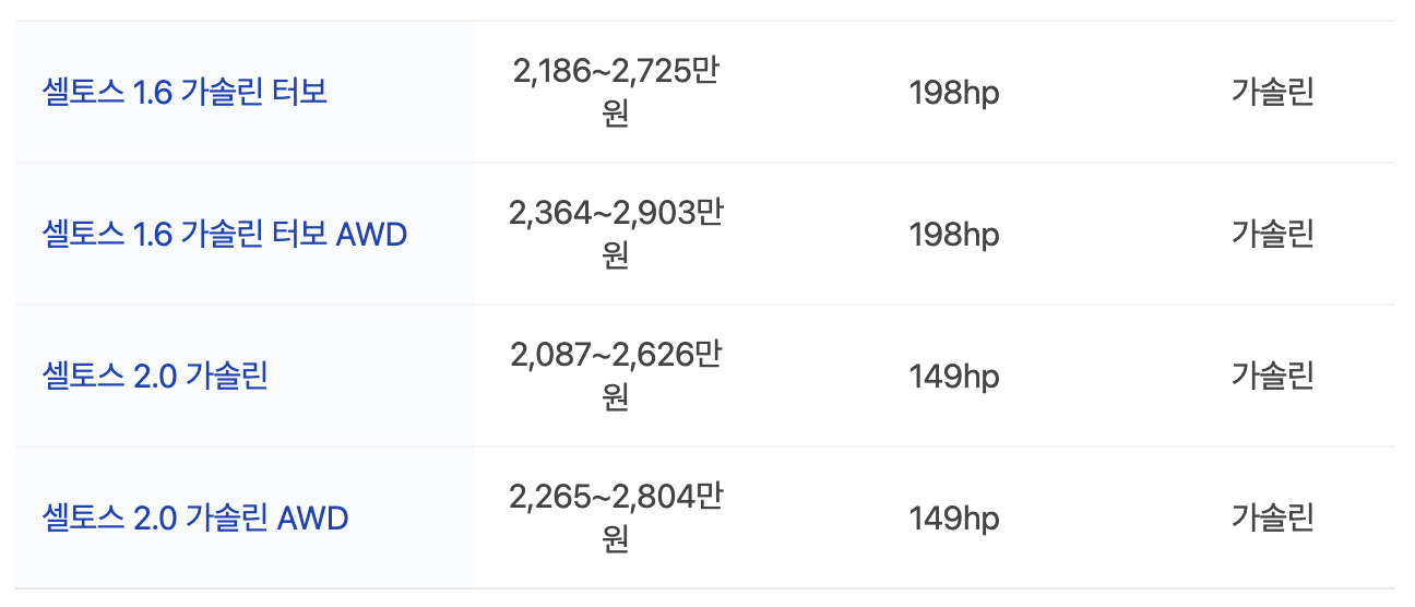 6. 2024년형 셀토스, 가격은 어떻게 되나요?