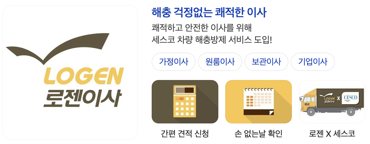 - 세스코와 제휴하여 해충 방제 서비스를 제공합니다.