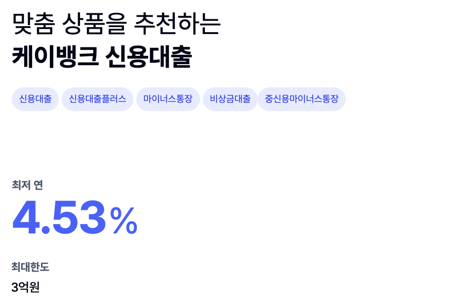 | 2 | 케이뱅크 | 신용대출 | 4.32% |