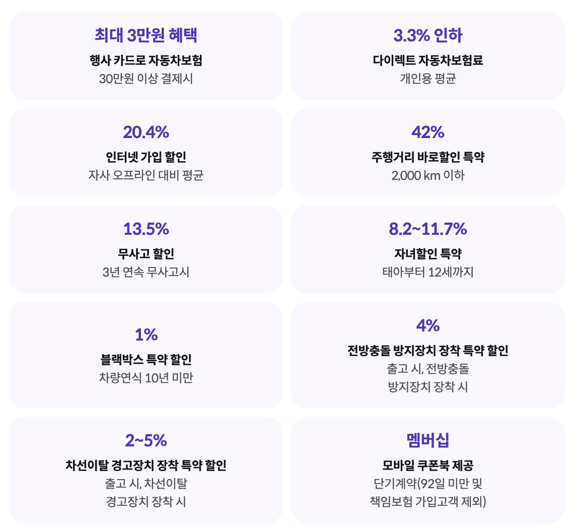 - 장점: 안전 운전 할인 특약 강화, 다양한 부가 서비스 제공, 삼성화재 상품에 대한 상세 정보 제공
