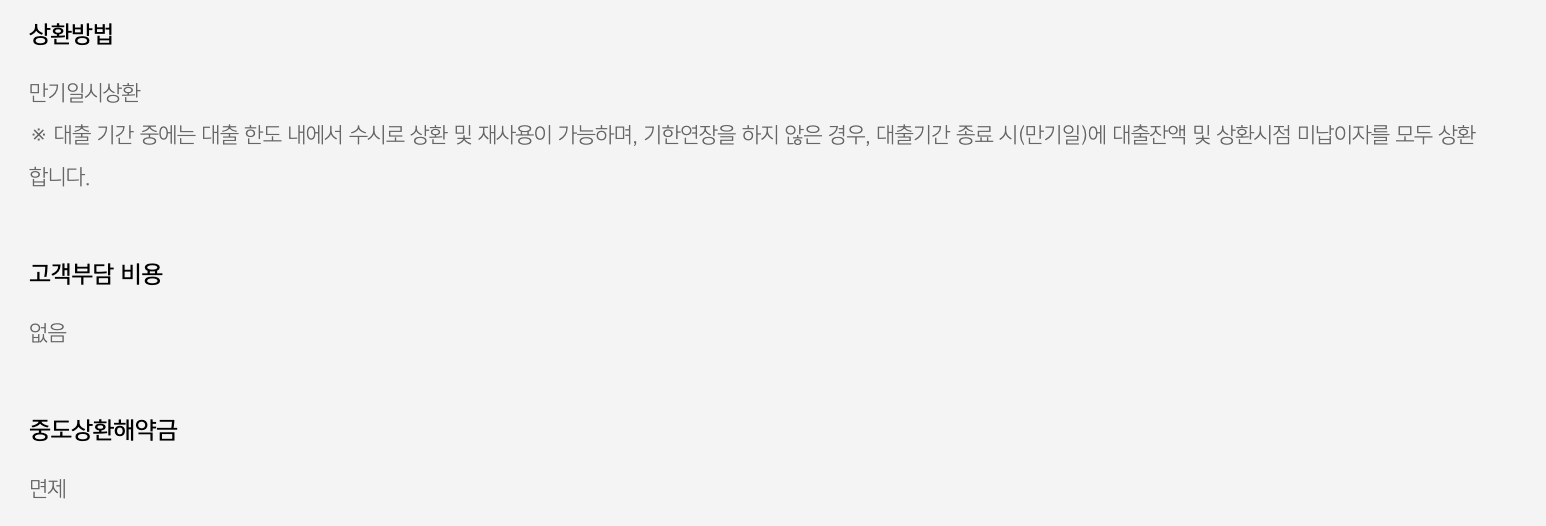 - 중도상환해약금 면제: 언제든지 중도 상환해도 수수료가 발생하지 않습니다.