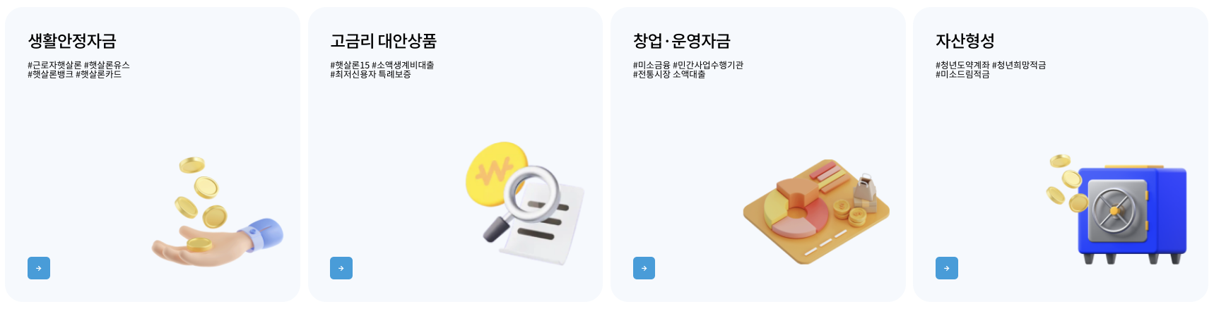 - 특징: 긴급 생계 자금 지원, 저금리, 장기 상환