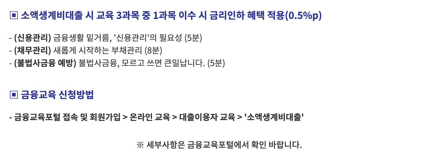 5. 소액생계비 대출, 금융 교육을 받으면 금리가 낮아진다! 🎓 (금융 교육 이수 시 우대금리 혜택)