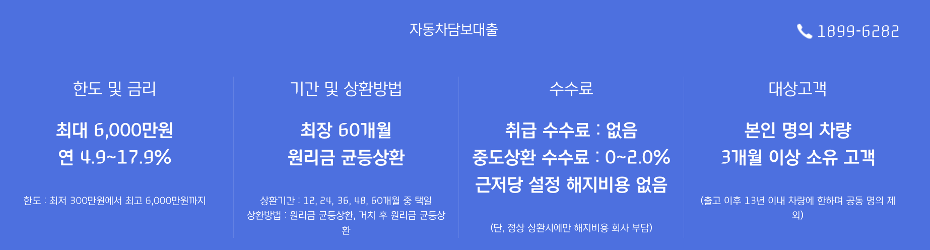 - 대출 대상: 본인 명의 자동차를 소유한 만 20세 이상 개인