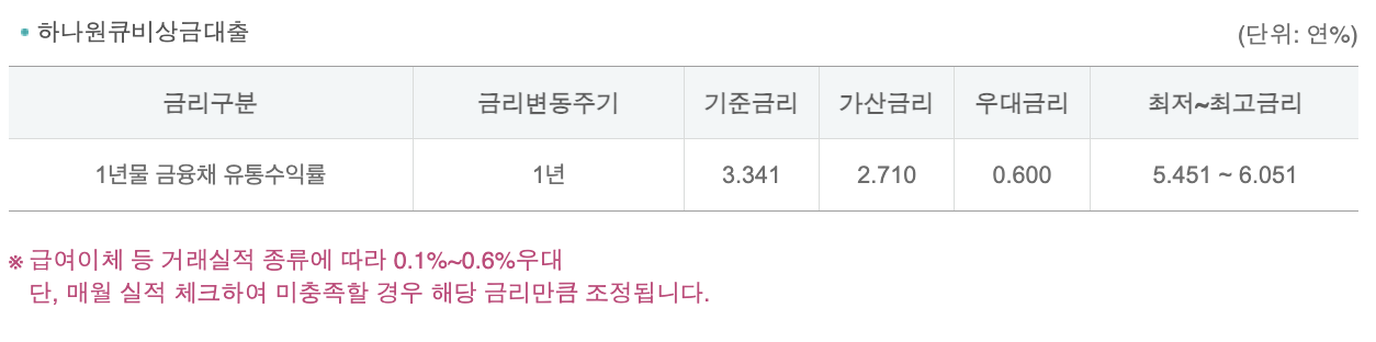 - 급여/연금 이체: 하나은행 계좌로 급여 또는 연금을 이체하면 우대금리를 받을 수 있습니다.