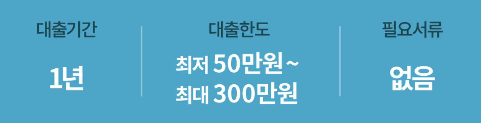 - 대출 한도: 최소 50만 원 ~ 최대 300만 원