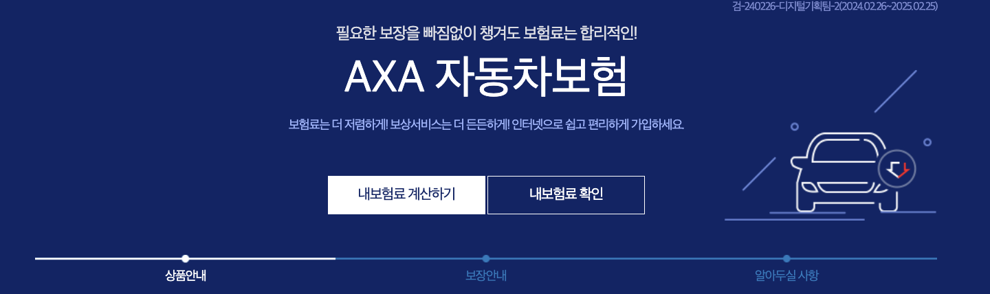 안녕하세요! 사랑하는 가족과 함께 안전하고 즐거운 드라이빙을 꿈꾸는 모든 분들께 악사(AXA) 자동차보험을 소개합니다! 😊 악사 자동차보험은 폭넓은 보장과 다양한 특약, 그리고 신속한 서비스로 운전자 여러분의 안전을 책임집니다. 👍
