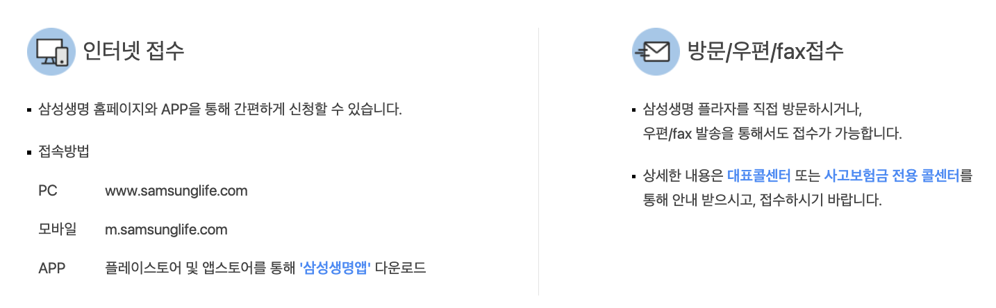 - 방문 청구: 가까운 삼성생명 지점을 방문하여 직접 청구할 수 있습니다.