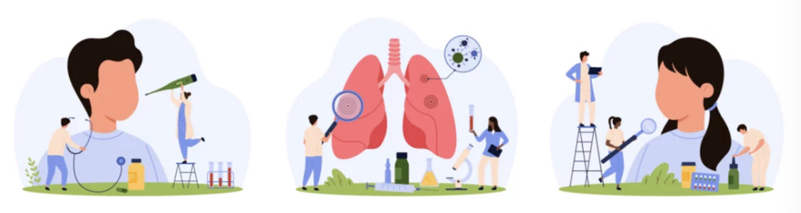 - 병력 청취: 기침, 가래, 발열 등 증상 발생 시기와 양상을 확인합니다.