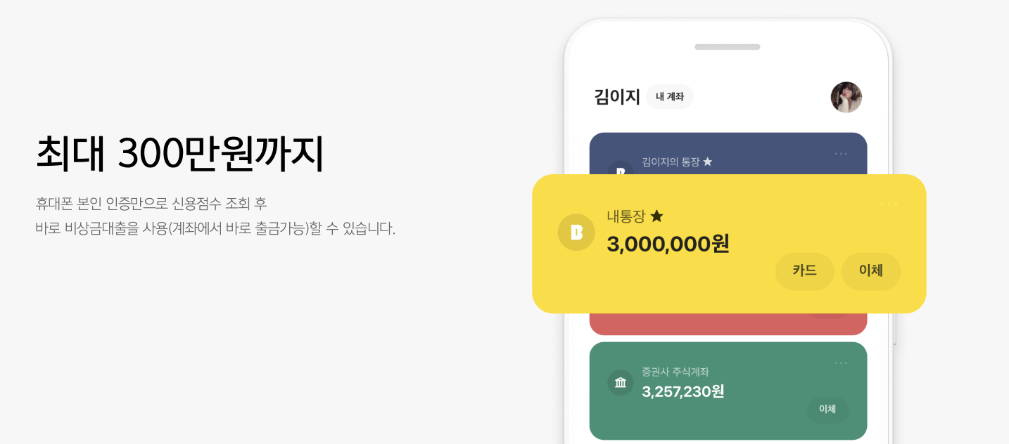 카카오뱅크의 비상금대출은 소액의 자금이 필요할 때 간편하게 이용할 수 있는 모바일 전용 대출 상품입니다. 무직자, 주부, 학생 등 소득 증빙이 어려운 분들도 신청 가능하다는 점이 가장 큰 특징이에요.