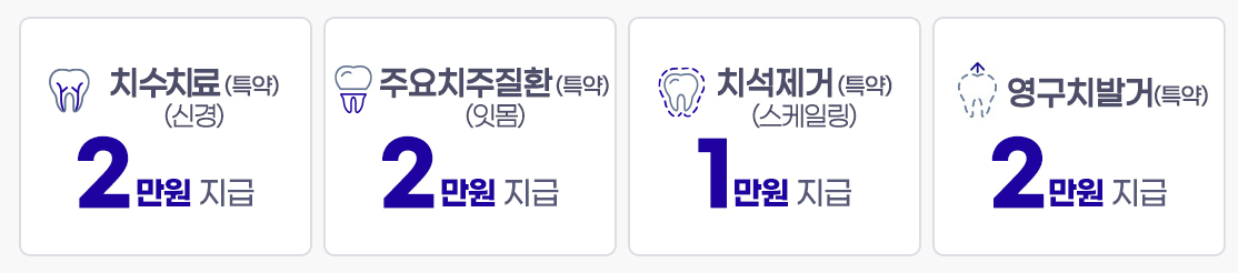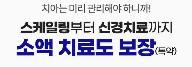 | 스케일링 | 치석 제거 및 치주 질환 예방을 위한 스케일링 치료 보장. | 연 1회 무료 또는 일정 금액 보장. |