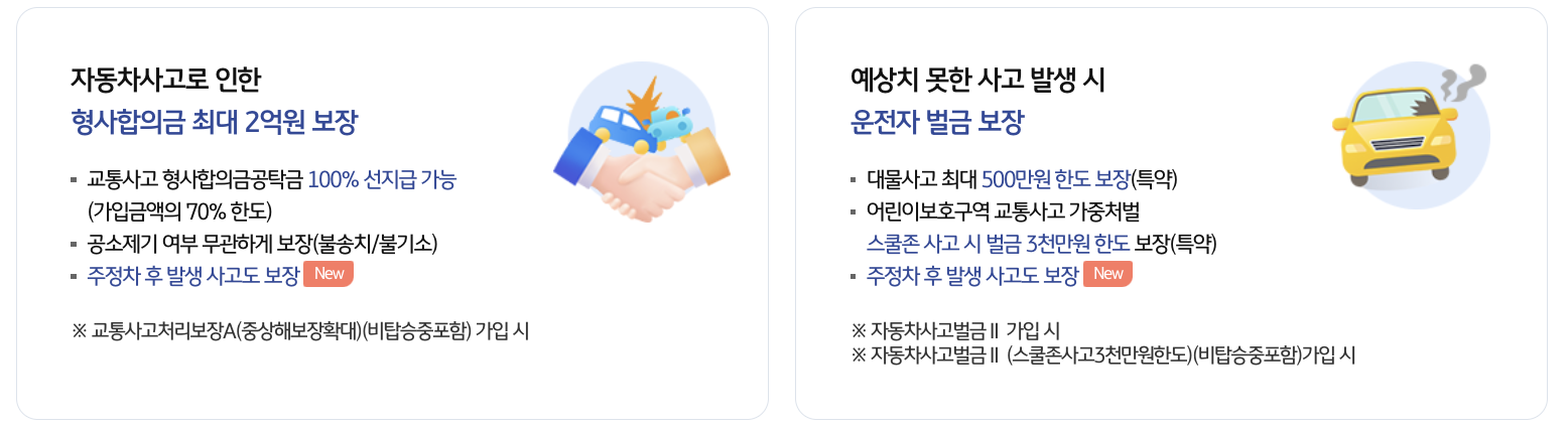 - 교통사고 벌금 최대 2,000만 원까지 보장.