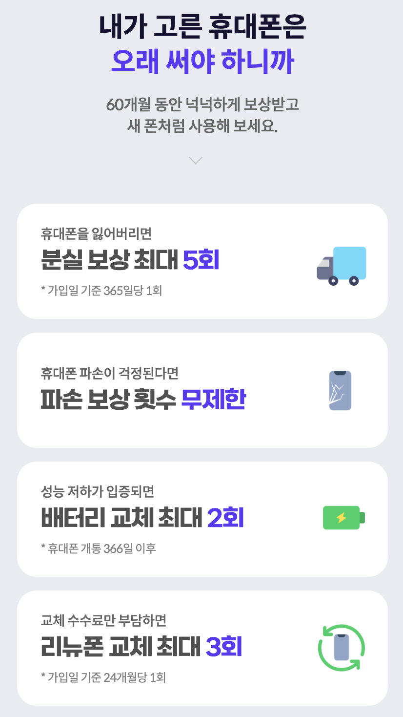 - 다양한 보장 항목: 파손, 배터리 교체, 침수 등 폭넓은 보장.
