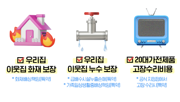 - 아파트, 단독주택, 다가구주택 등 주택 유형에 따라 보장 내용이 달라질 수 있으니 주의하세요.
