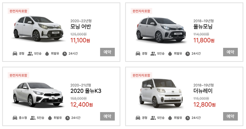 | 경차 (모닝, 스파크) | 1~2인 소규모 여행, 저렴한 연료비 & 주차 편리 |