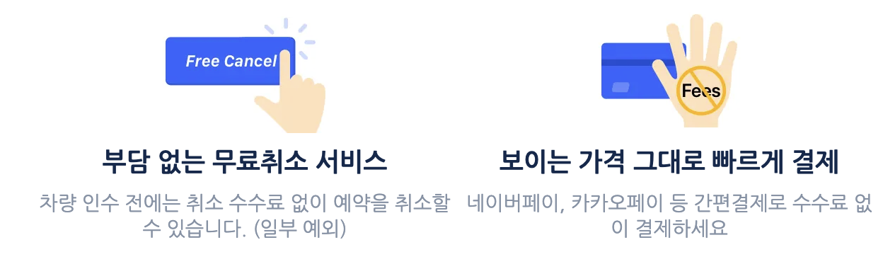 ✔ 여행 스타일에 맞는 차량 선택 (경차, 소형차, SUV, 전기차 등)
