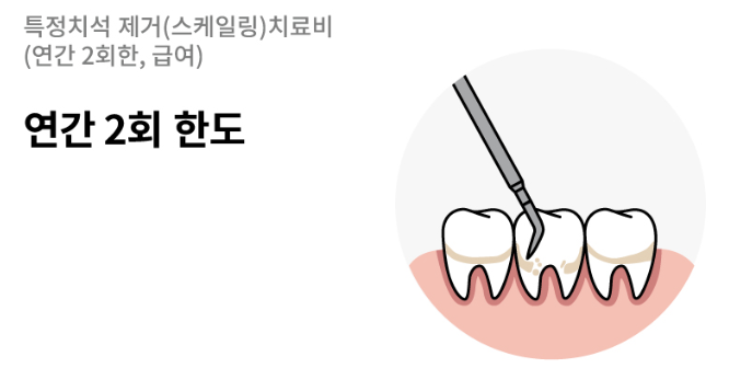 스케일링(치석 제거) | 연 1회 치료비 지급 | 1만 원 / 회 |
