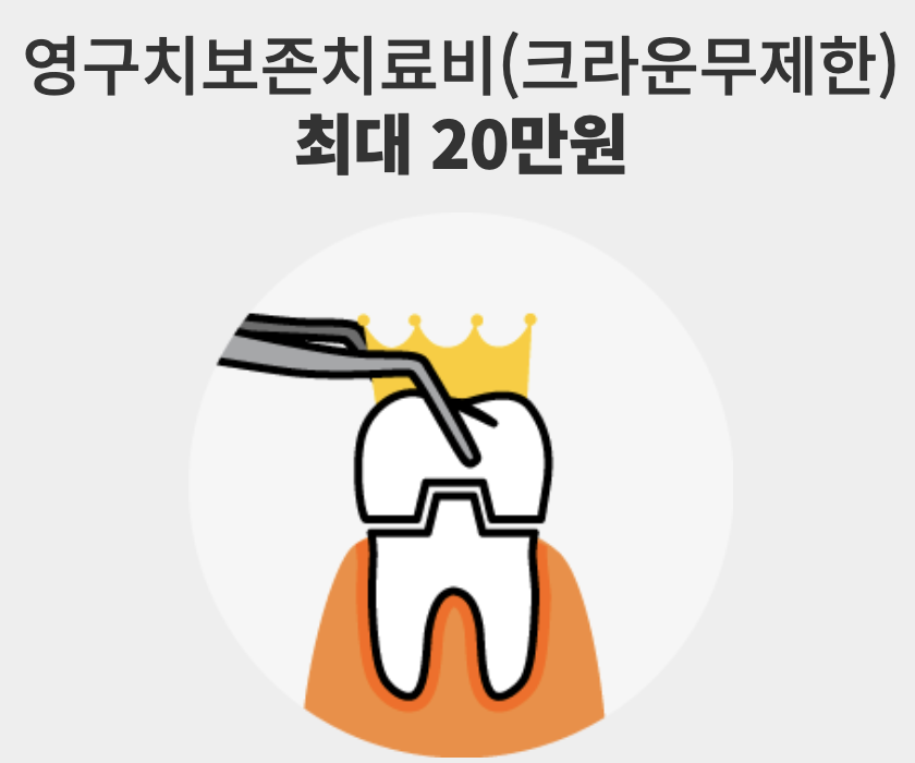 | 크라운 치료 | 손상된 치아 보호 및 보철 치료비 보장 | 10만 원 / 개 |