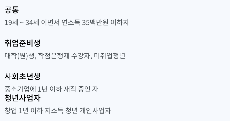 ✔ 정부 지원 정책 금융상품으로, 만 19세~34세 청년을 대상으로 지원
