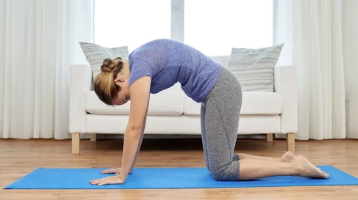- 천천히 허리를 둥글게 말면서 등을 위로 올려줌 (고양이 자세)