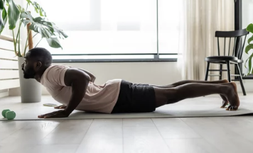 - 엉덩이를 천천히 들어 올려 몸이 일직선이 되도록 유지