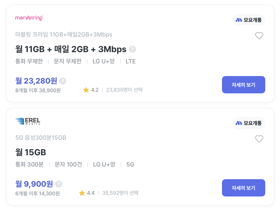 - 요금제를 자유롭게 바꿀 수 있습니다. 통신사와 약정을 하지 않으므로 언제든지 요금제를 변경하거나 다른 통신사로 이동할 수 있습니다.