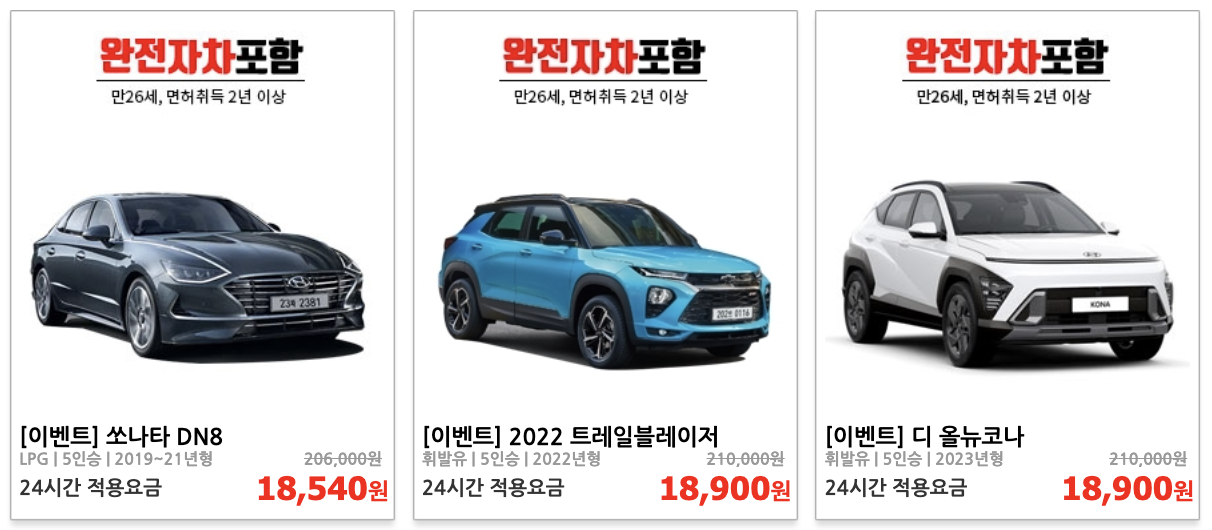 - 다양한 차량 선택: 소형차부터 SUV까지, 여러분의 필요와 예산에 맞는 차량을 쉽게 찾을 수 있습니다.