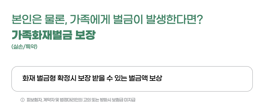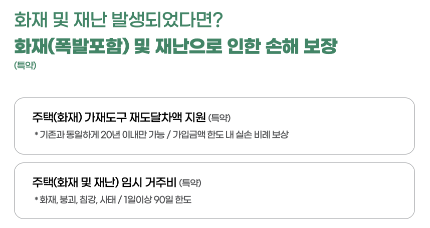 | 임시 거주 비용 | 화재로 주거 불가 시 임시 숙소 비용 보상 |
