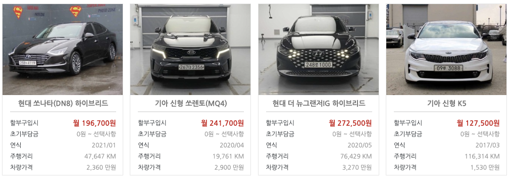 위 리스트는 단지 예시일 뿐이며, 실제 시세는 지역, 차량 상태, 주행 거리 등 여러 조건에 따라 달라질 수 있습니다. 따라서 차량을 구매하기 전에는 전문가의 평가를 받거나, 다양한 매물을 비교해보는 것이 좋습니다.