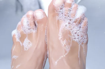 발가락 사이, 발바닥 주름진 부분까지 꼼꼼하게 비누로 닦아야 해요.