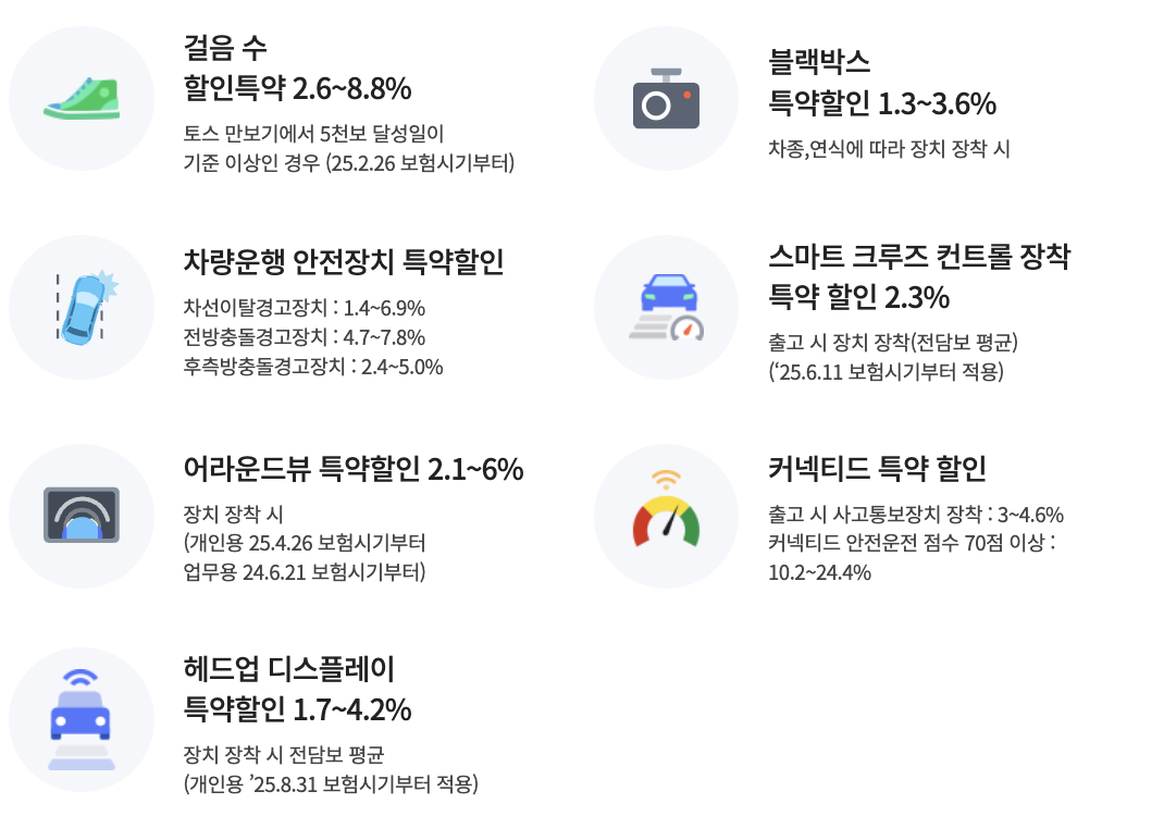 - 블랙박스 특약: 블랙박스 장착 시 보험료 할인