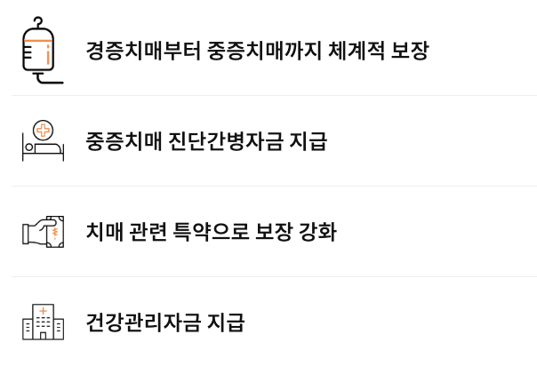 - 경도 치매부터 보장 → 조기 진단 시에도 대비 가능