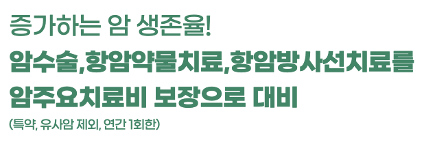 - 암 진단비: 주요 암(위암, 폐암, 간암, 유방암 등) 진단 시 보험금 지급