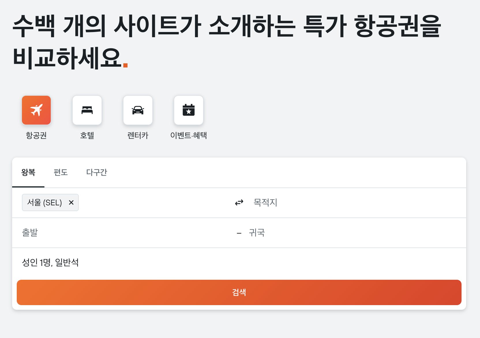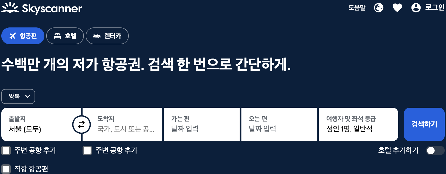 - 왕복·편도뿐 아니라 다구간 항공권도 검색 가능
