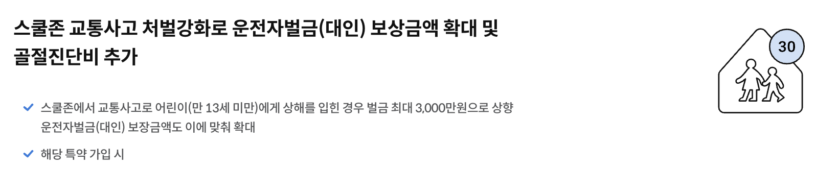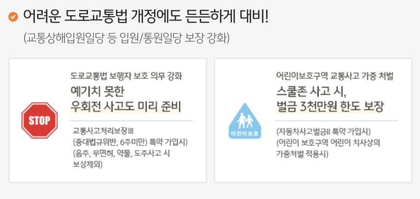 특히, 어린이보호구역 내에서 발생하는 사고에 대해서도 추가적인 보장을 제공하여, 어린이가 42일 미만의 치료를 요하는 경우 최대 5백만원 한도로 보장받을 수 있습니다. 이 외에도 다양한 특약을 통해 보다 폭넓은 보장을 받을 수 있으며, 자세한 사항은 DB손해보험의 공식 홈페이지에서 확인할 수 있습니다.