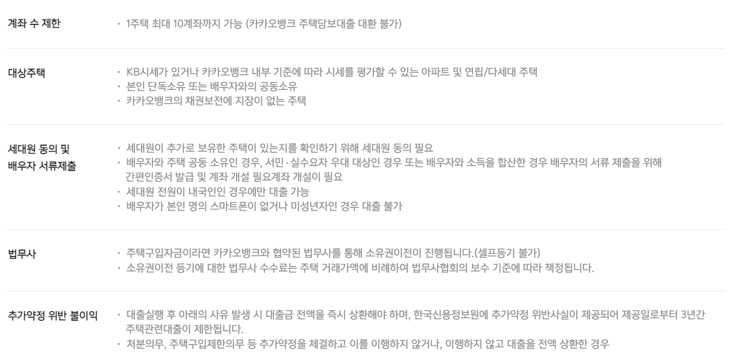 카카오뱅크 주택담보대출 금리 및 한도 총정리(2024최신)