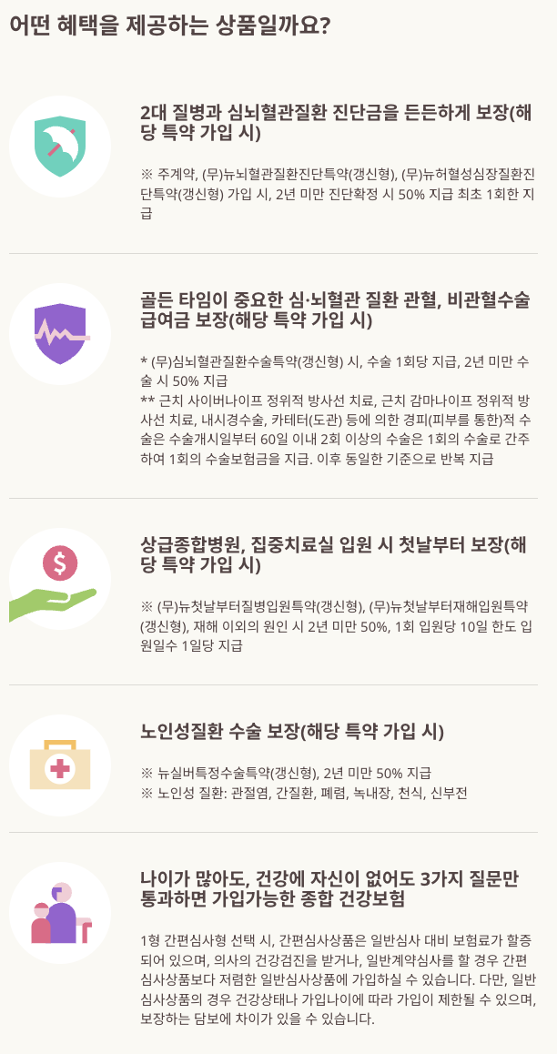 이 상품은 고령화를 넘어 초고령화 시대로 진입하는 인구구조 변화에 발맞춰, 노인성 질환에 대한 폭넓은 보장과 시니어에 특화된 헬스케어 서비스를 제공하는 것이 특징입니다. AIA생명은 앞으로도 각 연령대의 고객들이 필요로 하는 부분을 고심하여 더 오랫동안, 더 건강하게, 더 나은 삶을 누릴 수 있는 서비스를 반영한 상품을 선보일 계획입니다.