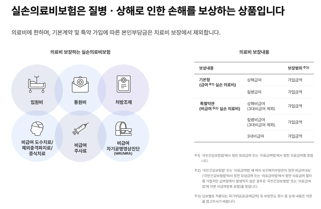 삼성화재 실비보험은 대한민국의 주요 보험 상품 중 하나로, 국민건강보험에서 보장하지 않는 의료비를 사용자가 부담하는 금액에 대해 보장해주는 상품입니다. 이 보험은 상해나 질병으로 인해 발생하는 의료비를 보장하며, 특약을 통해 비급여 항목에 대한 실손 의료비도 보장받을 수 있습니다. 삼성화재 실비보험은 4세대 실손의료비보험으로, 간편 가입 절차와 빠른 보험금 청구 서비스를 제공하며, 태아부터 65세까지 가입이 가능하고, 최대 100세까지 보장을 연장할 수 있는 재가입 기능을 제공합니다.