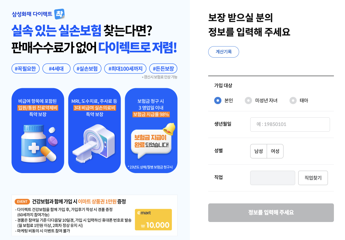 삼성화재의 공식 웹사이트에서는 보험 상품에 대한 자세한 정보와 가입 문의, 각종 상담신청을 할 수 있으며, 보험계약 확인, 보험료 납입, 계약 변경, 보험금 청구 등 계약 관련 업무를 편리하게 이용할 수 있습니다. 또한, 삼성화재 실비보험은 감기와 같은 사소한 질병부터 암, 뇌졸증, 심근경색증 등 중대질병과 상해사고까지 필요한 의료비를 보장하며, 자사 다른 채널 대비 저렴한 보험료를 제공한다고 알려져 있습니다.