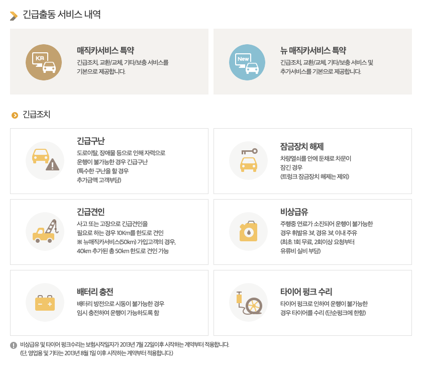 긴급출동서비스는 다음과 같은 상황에서 요청할 수 있습니다: