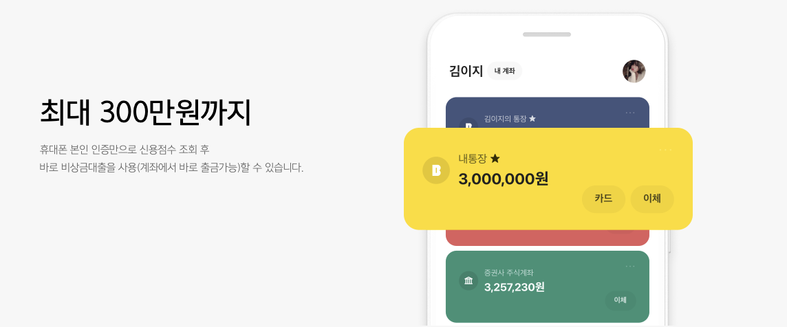 카카오뱅크 비상금대출은 신청 과정이 간편하고, 복잡한 서류 제출이나 지점 방문 없이 휴대폰 본인 인증만으로 신용점수 조회 후 대출이 가능합니다. 평균 대출 소요 시간은 30초에서 3분 정도이며, 대출한 금액은 입출금 통장에서 바로 인출할 수 있어 긴급한 자금이 필요할 때 신속하게 대응할 수 있는 장점이 있습니다.