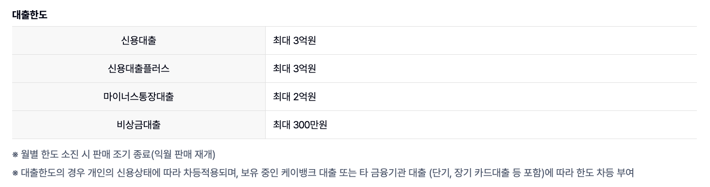 1. 대출 한도: 최대 3억원까지 가능하며, 이는 일반적인 직장인 신용대출 한도 중 가장 높은 수준입니다. 한도는 개인의 신용 상태에 따라 차등 설정되며, 기존 케이뱅크 대출이나 타 금융기관 대출도 한도에 영향을 미칩니다.